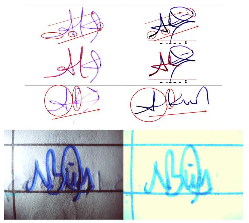 İmzalar tamamen kişiye özgü bir mahsül olup birebir taklit edilmesi mümkün değildir. İmzanın sahteliğinin tespiti inceleyen uzmanın teknik donanımına mesleki tecrübesine bağlıdır. İyi taklit edilmiş birçok imza vardır bunun tespiti için incelemeyi yapan uzmanın alanında yetkin bir adli belge inceleme uzmanı olması büyük önem taşır. Taklit edilen imzanın gerçek imzadan ayrıldığı en önemli unsurlar ;